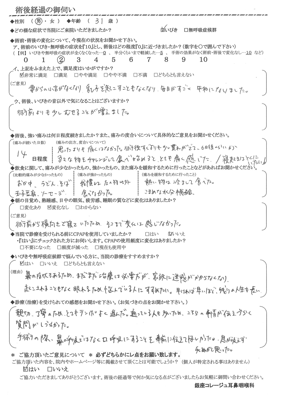 術後の患者様の感想 No.3166