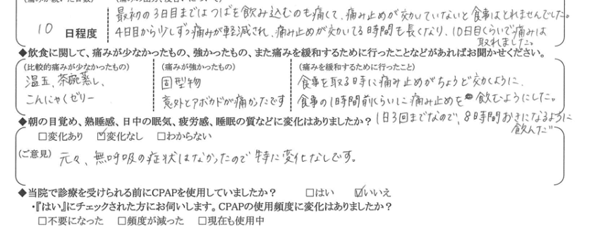 (ご意見)  元々、無呼吸の症状はなかったので、特に変化なしです。