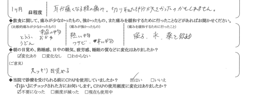 Q.術後、強い痛みは何日程度続きましたか?また、痛みの度合いについて具体的なご意見をお聞かせください。