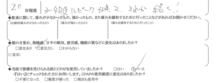 Q.術後、強い痛みは何日程度続きましたか?また、痛みの度合いについて具体的なご意見をお聞かせください。