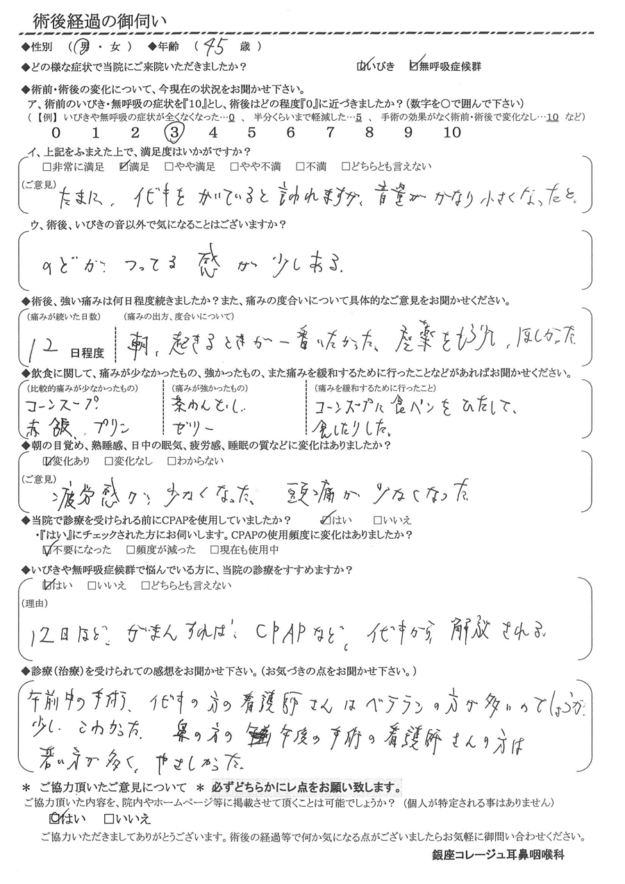 術後の患者様の感想 No.3177
