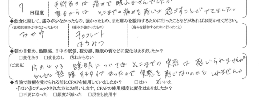 術後の患者様の感想 No.3178