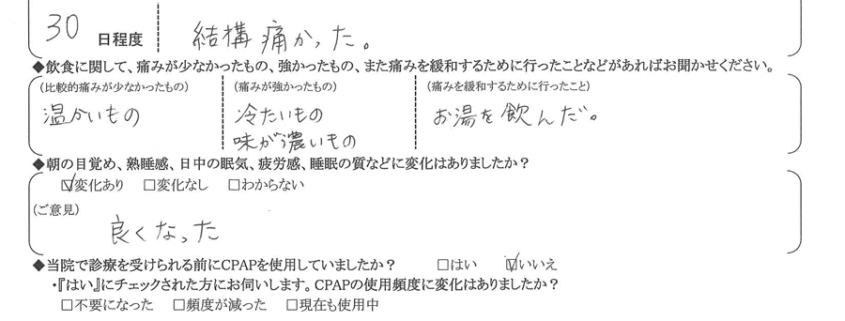 A:(痛みが強かったもの) 冷たい物・味が濃い物