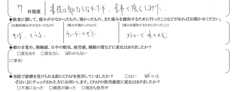 A:(痛みを緩和するために行ったこと) ストローで水を飲む