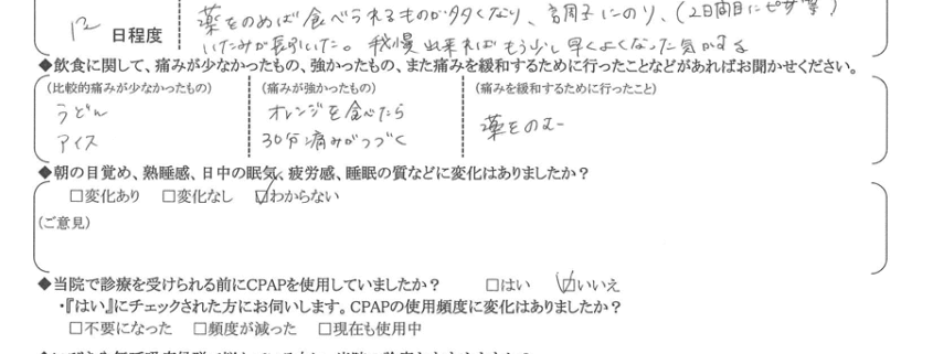 Q.診療(治療)を受けられての感想をお聞かせ下さい。