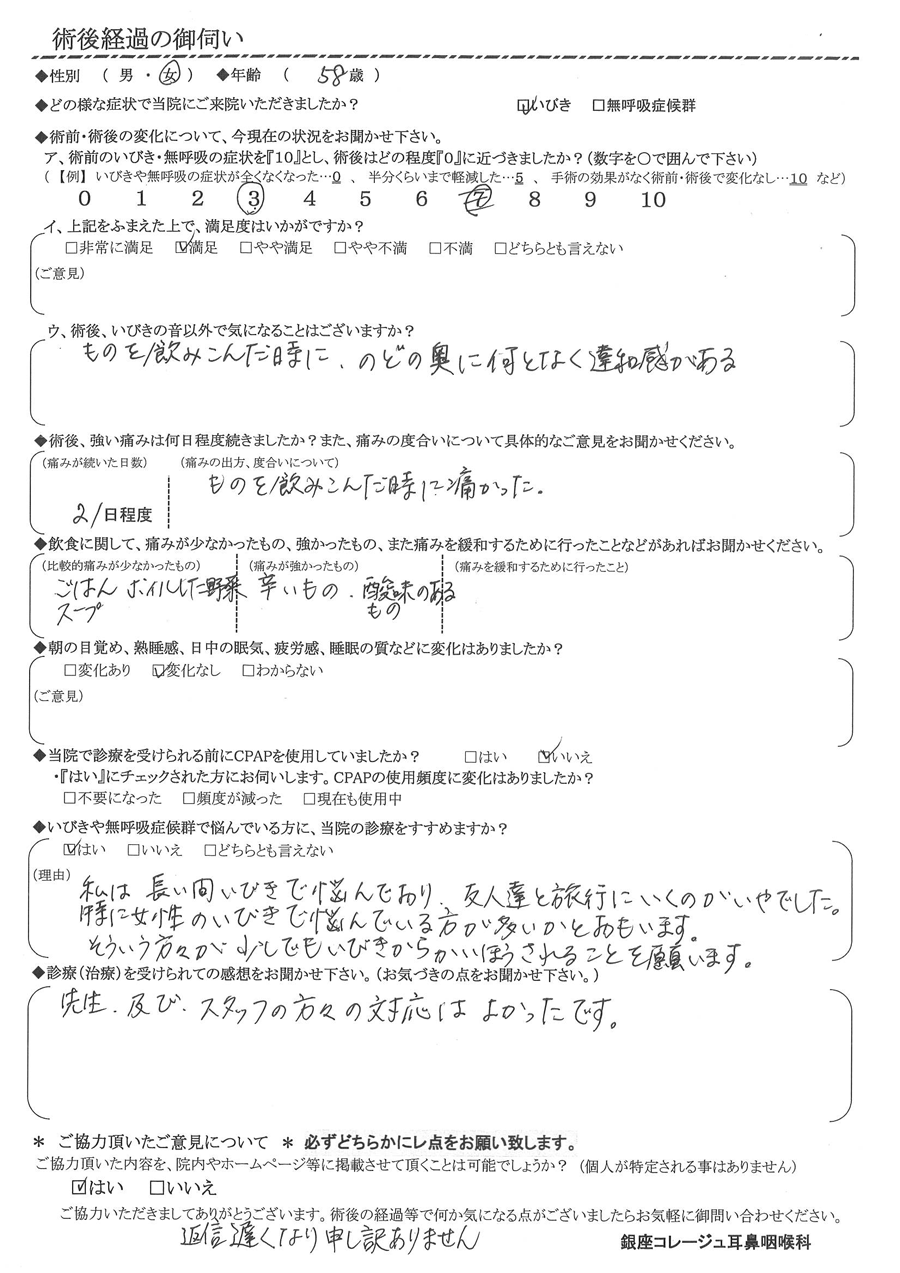 Q.いびき・無呼吸で悩んでいる方に、当院の診療をすすめますか? 理由もお聞かせください。