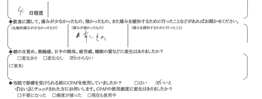 Q.術後、強い痛みは何日程度続きましたか?また、痛みの度合いについて具体的なご意見をお聞かせください。