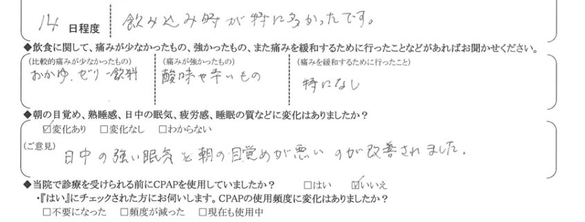 (ご意見) 日中の強い眠気と朝の目覚めが悪いのが改善されました。