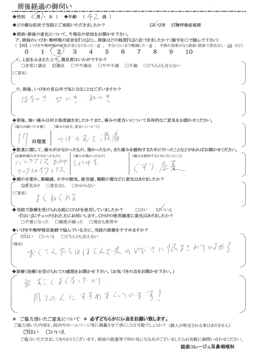 術後の患者様の感想 No.3242