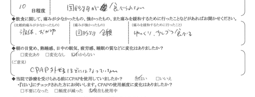 (痛みの程度について) 固形物が食べられない。