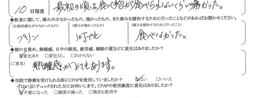 (痛みの程度について) 最初の頃は、食べ物が食べられないくらい痛かった。