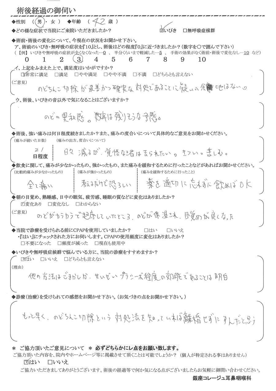 術後の患者様の感想 No.3262