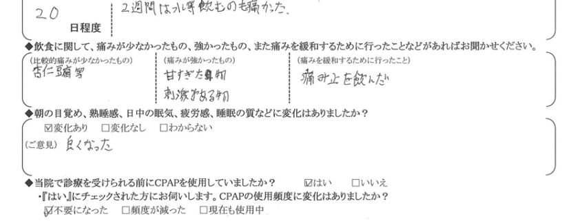 (痛みの程度について) 2週間は水など飲むのも痛かった。
