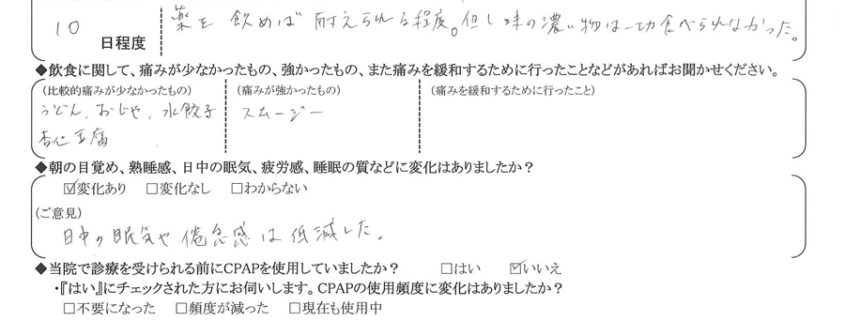 (ご意見) 日中の眠気や倦怠感は低下した。
