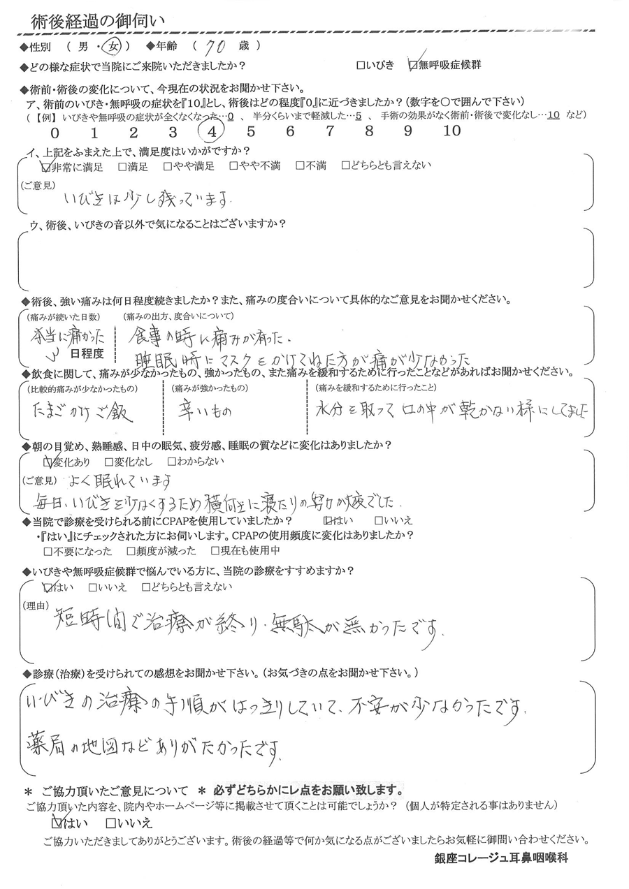 術後の患者様の感想 No.3321