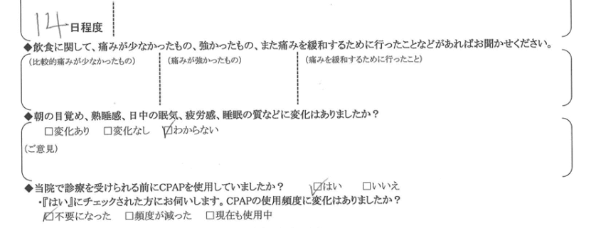 Q.朝の目覚め、熟睡感、日中の眠気、疲労感、睡眠の質などに変化はありましたか?