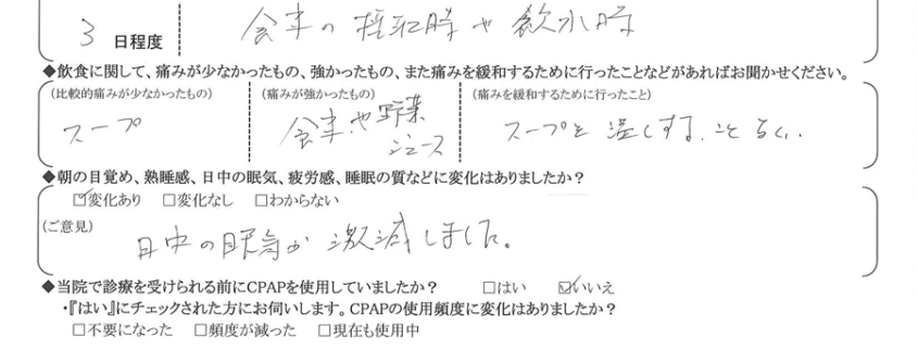 Q.飲食に関して、痛みが少なかったもの、強かったもの、また痛みを緩和するために行ったことなどあればお聞かせ下さい