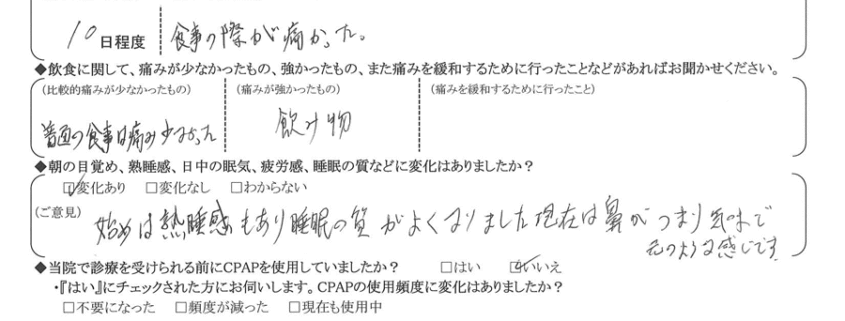 (痛みの程度について) 食事の際が痛かった。