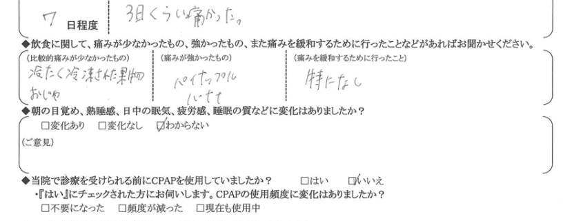 (痛みの程度について) 3日くらい痛かった。