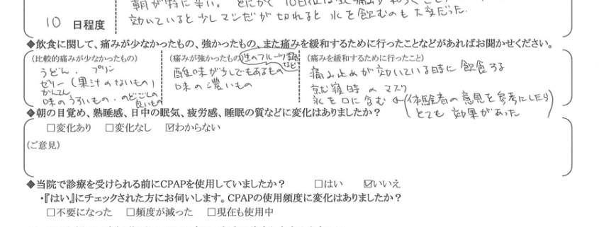 Q.飲食に関して、痛みが少なかったもの、強かったもの、また痛みを緩和するために行ったことなどあればお聞かせ下さい