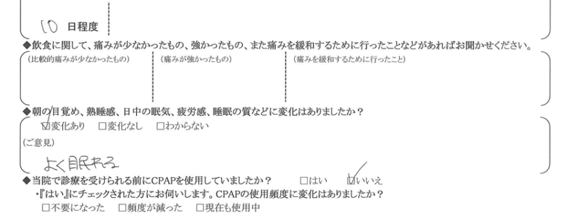 Q.朝の目覚め、熟睡感、日中の眠気、疲労感、睡眠の質などに変化はありましたか?