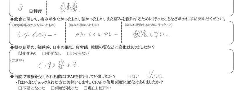 (痛みの程度について) 食事毎