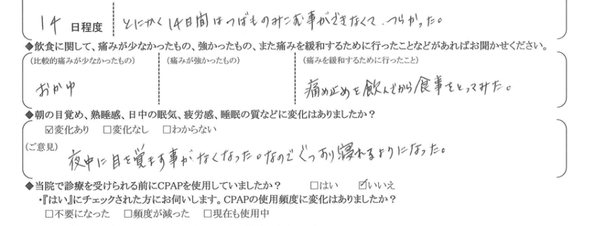 術後の患者様の感想 No.3466