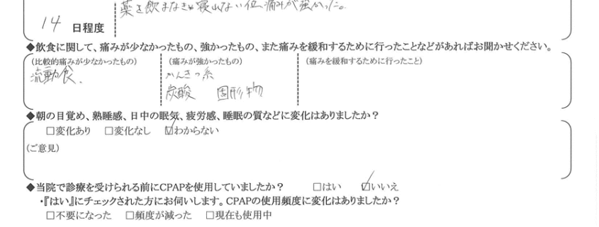 Q.術後、強い痛みは何日程度続きましたか?また、痛みの度合いについて具体的なご意見をお聞かせください。