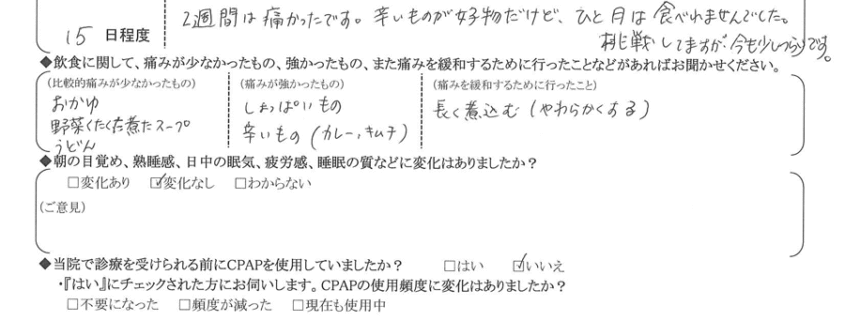 Q.飲食に関して、痛みが少なかったもの、強かったもの、また痛みを緩和するために行ったことなどあればお聞かせ下さい