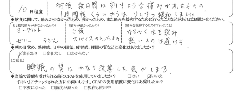 術後の患者様の感想 No. 3492