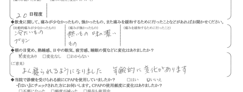 (ご意見) 良く寝られるようになりました。年齢的に変化があります。