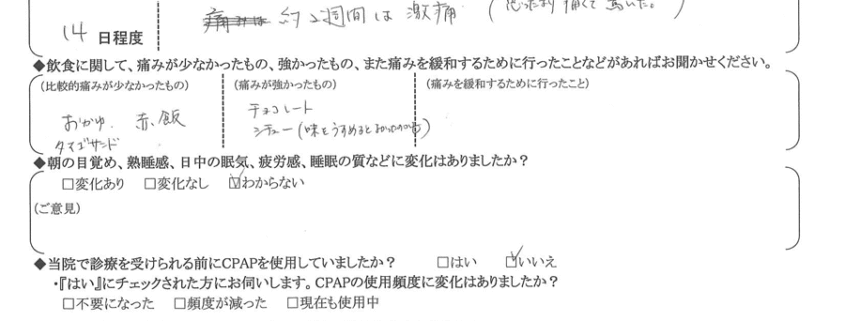 術後の患者様の感想 No. 3511