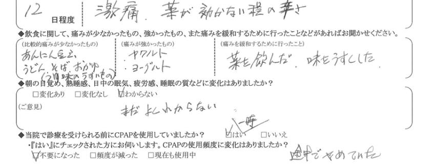 A:(痛みを緩和するために行ったこと) 薬を飲んだ・味を薄くした