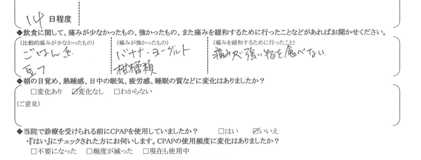 A:(痛みを緩和するために行ったこと) 痛みが強い物を食べない