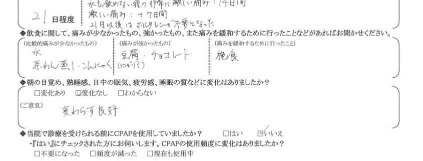 Q.術後、強い痛みは何日程度続きましたか?また、痛みの度合いについて具体的なご意見をお聞かせください。