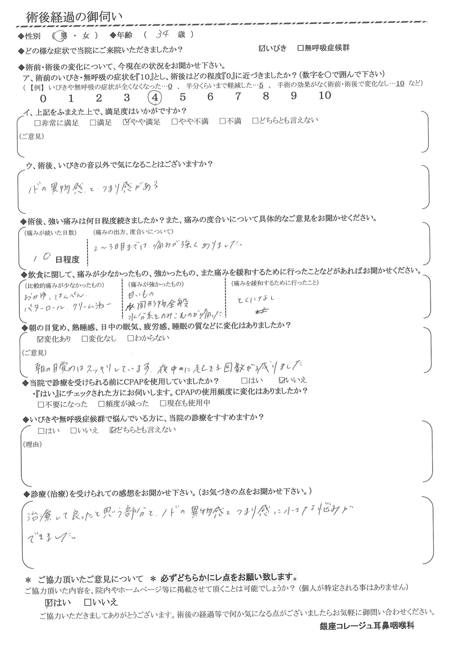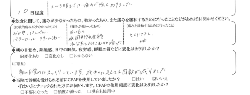 術後の患者様の感想 No. 3533