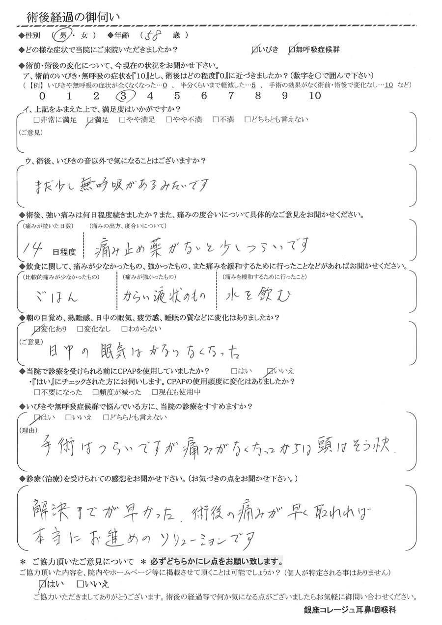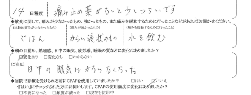 (ご意見) 日中の眠気はかなり無くなった。