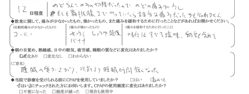 ウ、術後、いびきの音以外で気になる点はございますか?