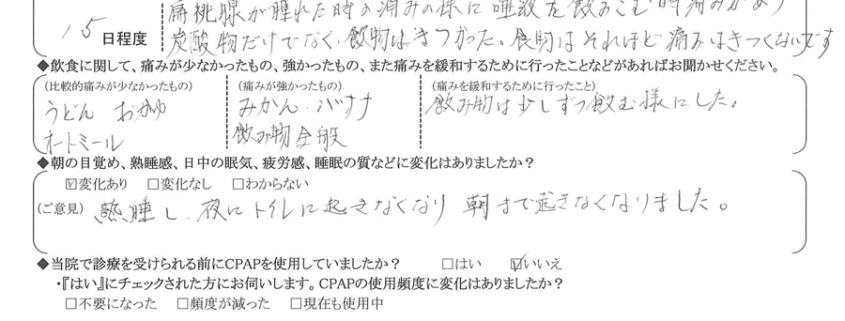 (理由) CPAPやマウスピースより、良いと思います。