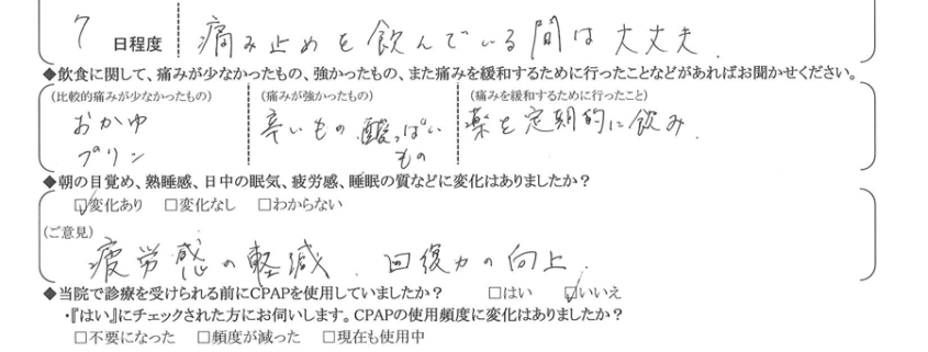 (痛みの程度について) 痛み止めを飲んでいる間は大丈夫。