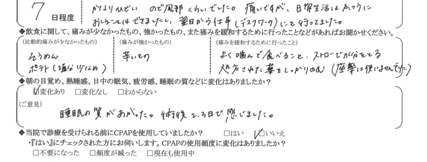(ご意見) 睡眠の質が上がった。術後2~3日で感じました。