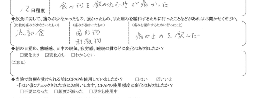 (痛みの程度について) 食べ物を飲み込む時が痛かった。
