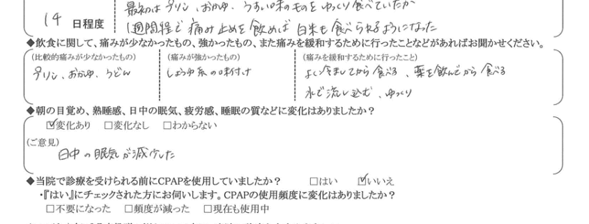 (ご意見) 日中の眠気が減少した。
