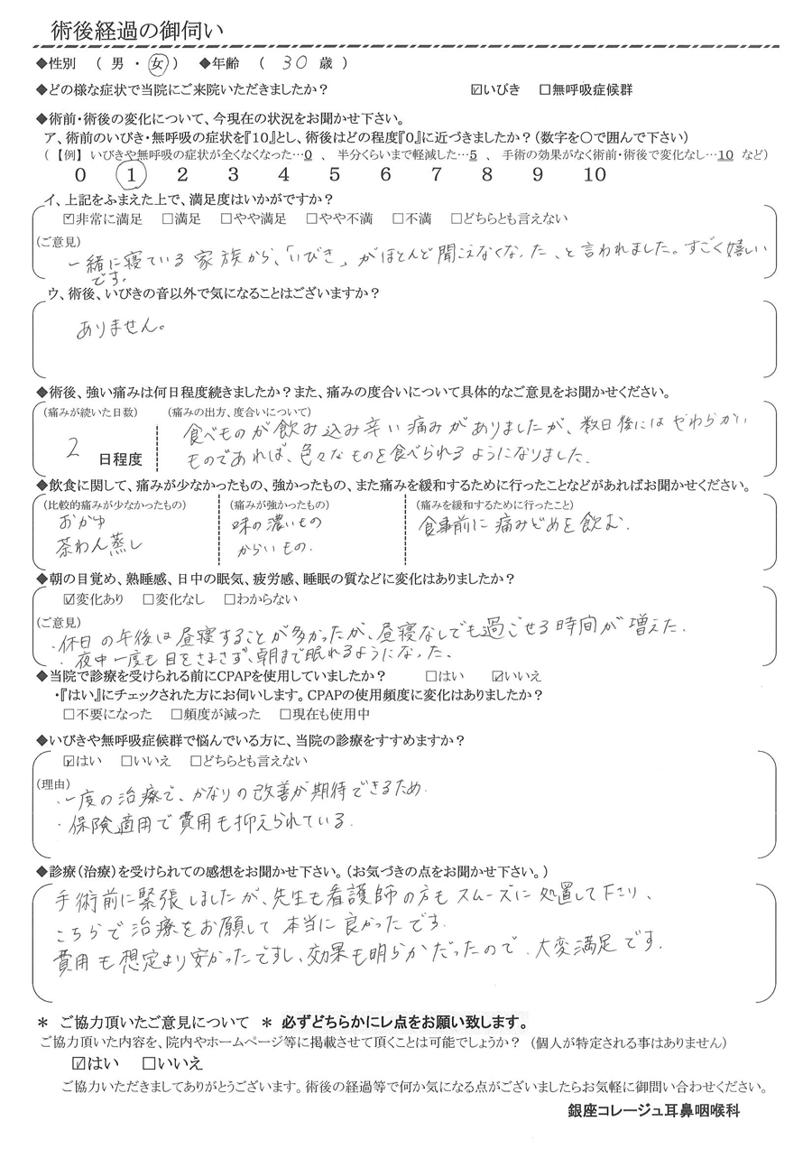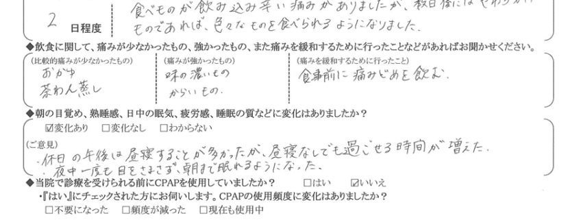 (ご意見) 一緒に寝ている家族から、「いびき」がほとんど聞こえなくなった、と言われました。凄く嬉しいです。