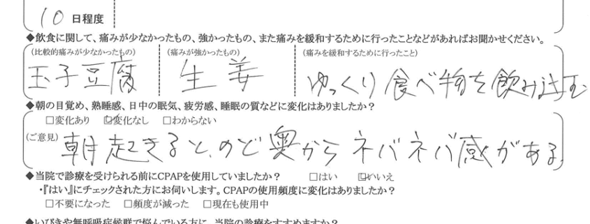 (ご意見) 朝起きると、喉奥からネバネバ感がある。