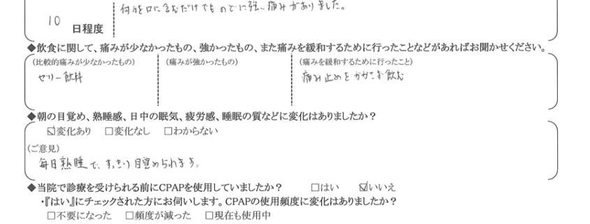 Q.朝の目覚め、熟睡感、日中の眠気、疲労感、睡眠の質などに変化はありましたか?