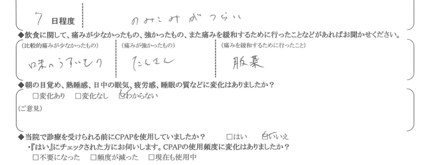 Q.術後、強い痛みは何日程度続きましたか?また、痛みの度合いについて具体的なご意見をお聞かせください。
