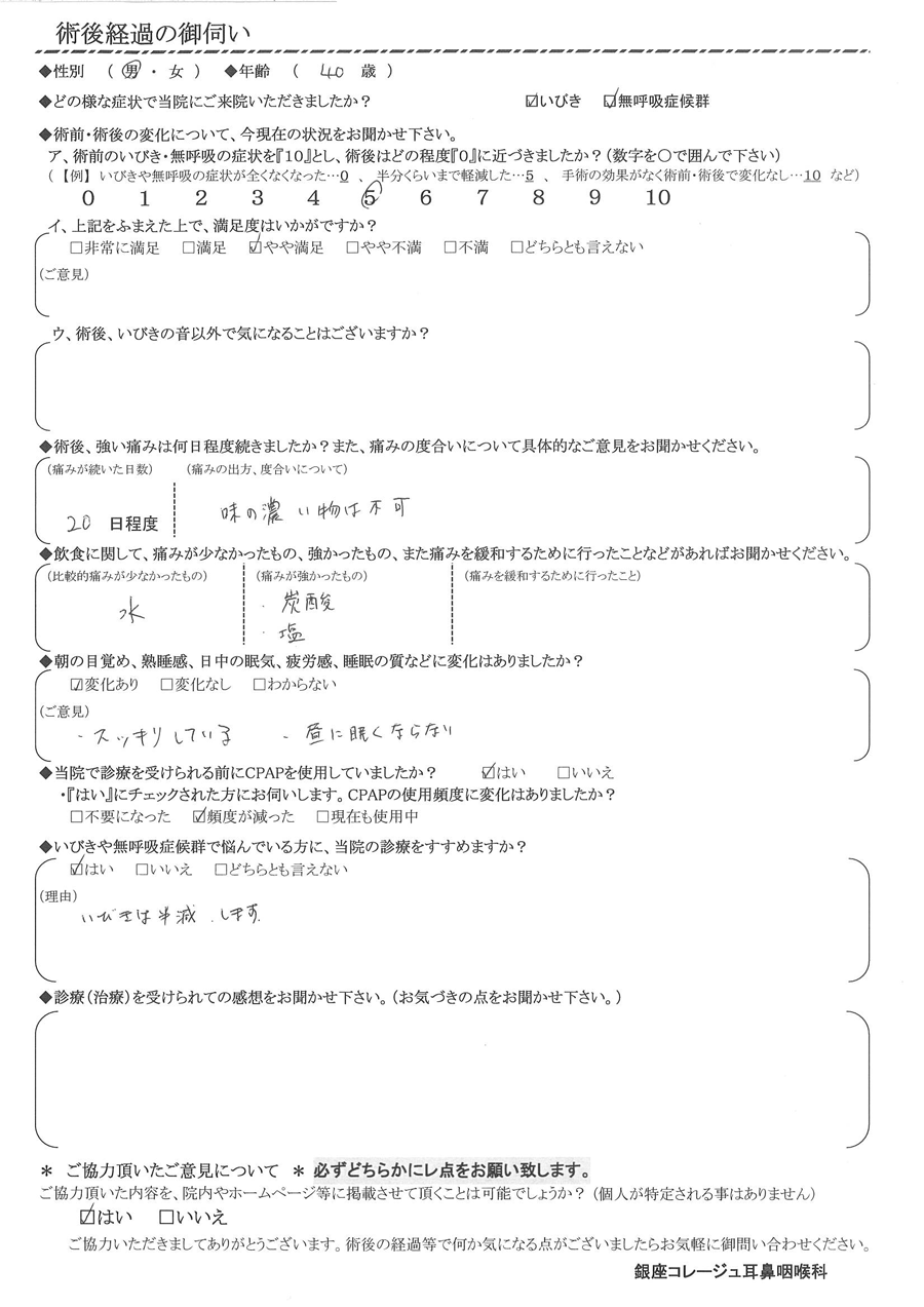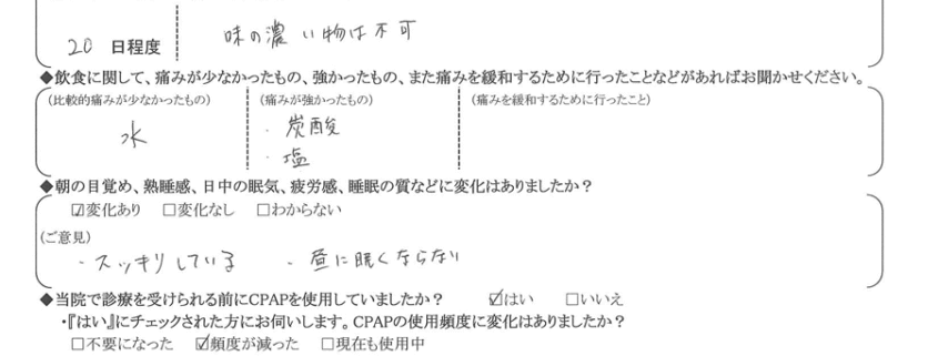術後の患者様の感想 No. 3644