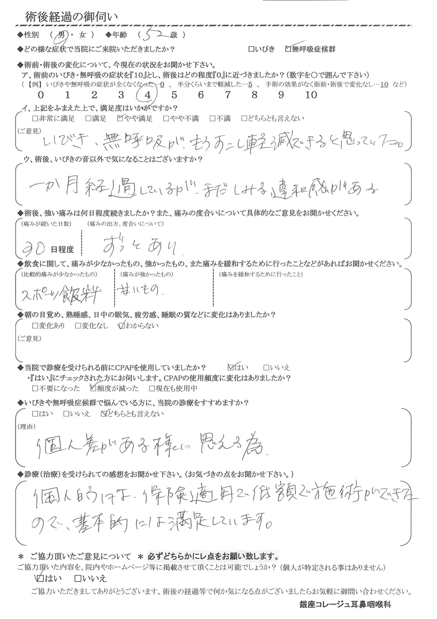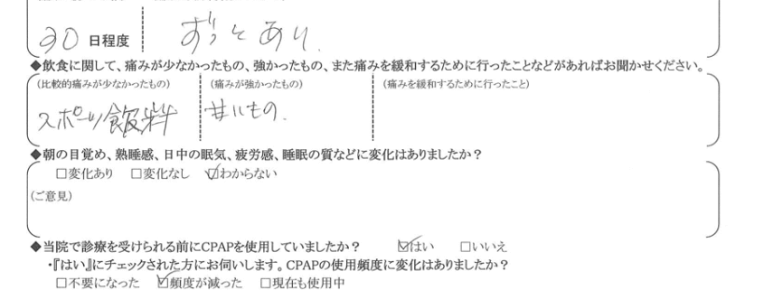 (ご意見) イビキ・無呼吸が、もう少し軽減できると思っていた。
