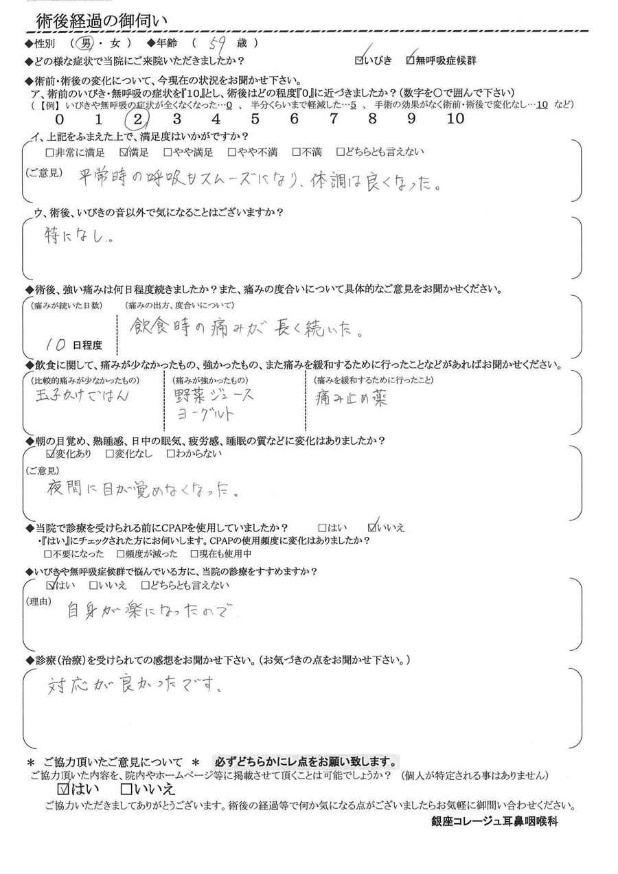 (ご意見) 平常時の呼吸もスムーズになり、体調は良くなった。